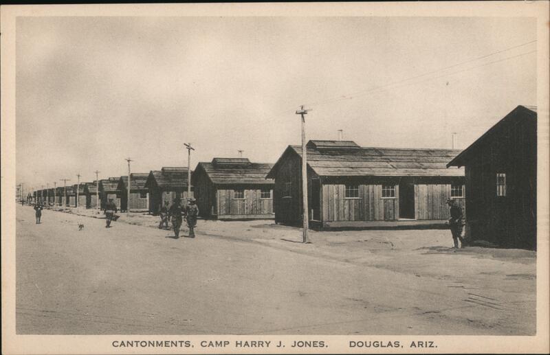 Front: CANTONMENTS, CAMP HARRY J. JONES. DOUGLAS, ARIZ. Back: Post Cards of Quality. The Albertype Co., Brooklyn, N. Y. THIS SPACE FOR ADDRESS.