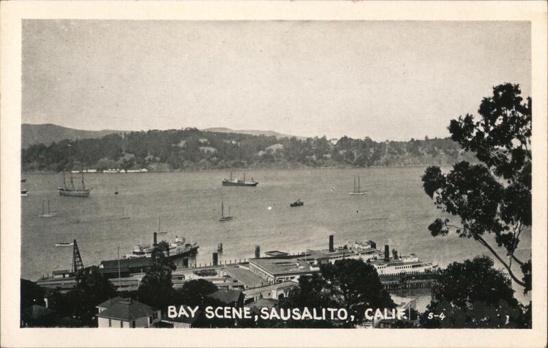 Front: BAY SCENE, SAUSALITO, CALIF 514 Back: 600 PACIFIC NOVELTY CO. SAN FRANCISCO & LOS ANGELES STAMP