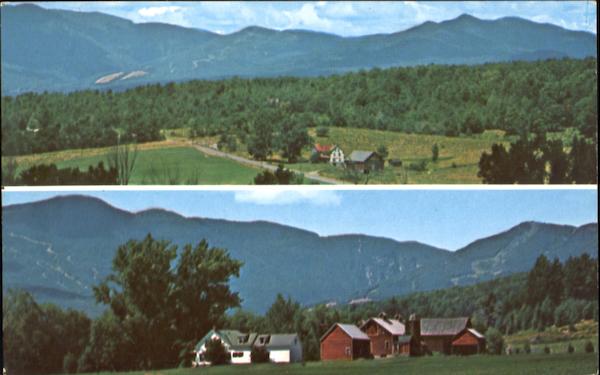VT.697 Many peaceful farms nestle in the valley under majestic Mt. Mansfield (Vermont's highest) and Spruce Mt. in Stowe, Vermont. GAF COLOR by Tommy Lee Knappe Here: 126012 Pub. by Forward's Color Productions, Inc. Manchester, Vermont 05254