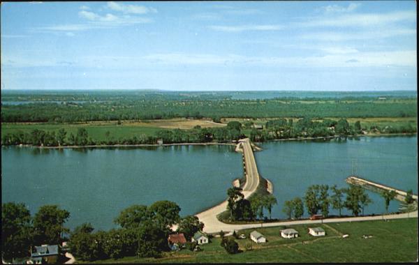 North Hero Bridge on Lake Champlain. View from North Hero, Vermont looking towards South Alburg, Vermont, on U.S. 2, direct Route to Canada.