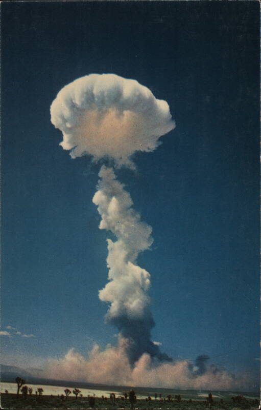 HSC-89 ATOMIC BOMB EXPLOSION Mushroom Cloud, Yucca Flats, Nevada U. S. Army Photograph MIRRO-KROME CARD BY H. S. CROCKER CO., INC., SAN FRANCISCO 1, CALIF. here