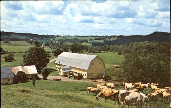 Lush green fields and peacefully grazing cows combine for a quiet beauty so common to the hills of Vermont. This setting is the Twin Maple Farm in Walden. Photography by Howard Rutkowski #169 Pub. by Green Mountain Color, Cabot, Vermont 05647 48697