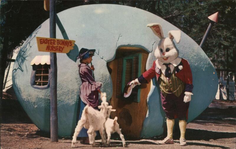 Front: EASTER BUNNY'S NURSERY Back: Santa's Village CALIFORNIA The Easter Bunny visits Santa's Village every Easter and treats the boys and girls to gaily colored eggs. SC3374 A MIKE ROBERTS COLOR PRODUCTION, BERKELEY 2, CALIF.