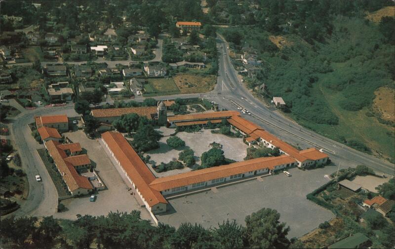 Carmel Mission An aerial of the famed Carmel Mission. Distributed by Bell Magazine Agency, Monterey, Calif. C18243 COLOR BY MIKE ROBERTS BERKELEY, CALIF. 94710 U.S.A.