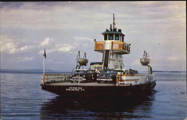| Fast streamlined auto ferry of the Lake Champlain Transportation Co., Inc., operating between Grand Isle, Vermont and Plattsburg (Cumberland Head), New York. One of the most scenic ferry crossings in North America. This vessel, built in 1953, is 138 feet in length, 37 feet in breadth, powered by two 425 h.p. diesel engines, capacity 26 cars, speed 11 knots. |