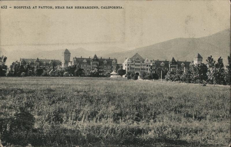 Front: 452 HOSPITAL AT PATTON, NEAR SAN BERNARDINO, CALIFORNIA. Back: -Post Card- PUBLISHED BY E. P. CHARLTON & CO LOS ANGELES, CAL. ONLY