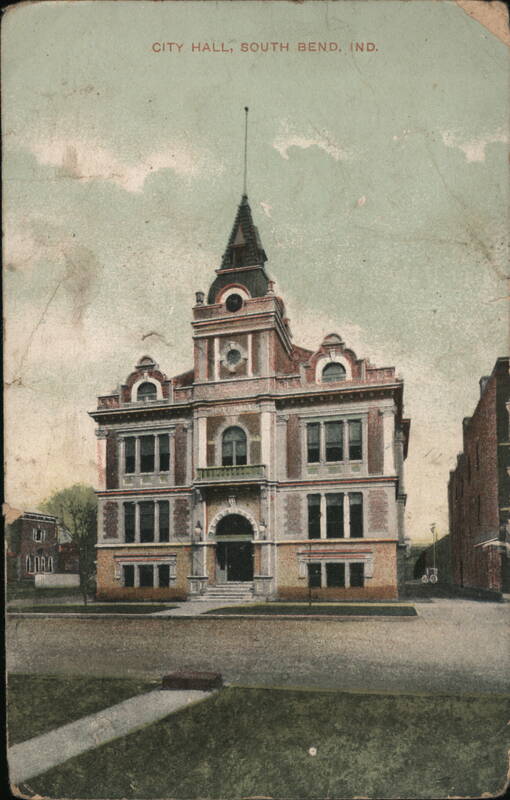 Front: Դ ՈՐ CITY HALL, SOUTH BEND, IND. Back: 8. Dear fuster I got home This Mo and as very glodd Chara га well. ne 9 So Good Bye, Do LIB JAN 12 2 PM 6061 NDA ERTY Miss Mr. Eichorst 402. W. La Sallave South Ben Ind