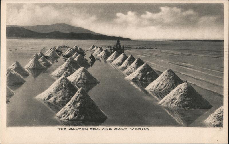 Front: THE SALTON SEA AND SALT WORKS. Back: This space is for the Domestic 1 Ct. Foreign 2 Cts. THE ALBERTYPE GO. BROOKLYN, N. Y. 4-
