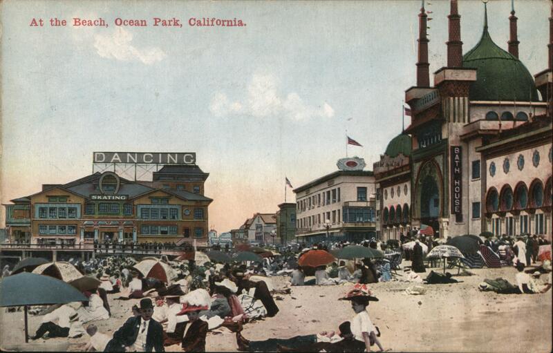 Front: At the Beach, Ocean Park, California. DANCING SKATING OW BATH HOUSE PATTONS PART 000 Back: Pub. by The O. Newman Company Los Angeles F 119 On the Road of a Thousand Wonders. Cuba 1c: 2c