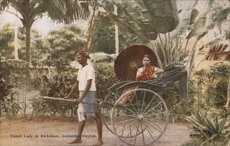 Front: Tamil Lady in Rickshaw, Colombo Ceylon. Back: No. 80. Copyright by PLATE, LTD., CEYLON. PLÁTÉ'S "ART" POST CARD. FOR ADDRESS ONLY