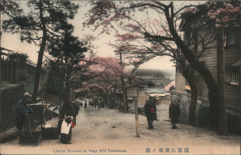 Front: NOTICE Cherry Blossom at Noge Hill Yokohama. 櫻/坂葉江濱横 Back: Ja13 POSTKARTE. Carte postale - Cartolina postale - Post card. ОТКРЫТОЕ ПИСЬМО. RA きかは便 糖