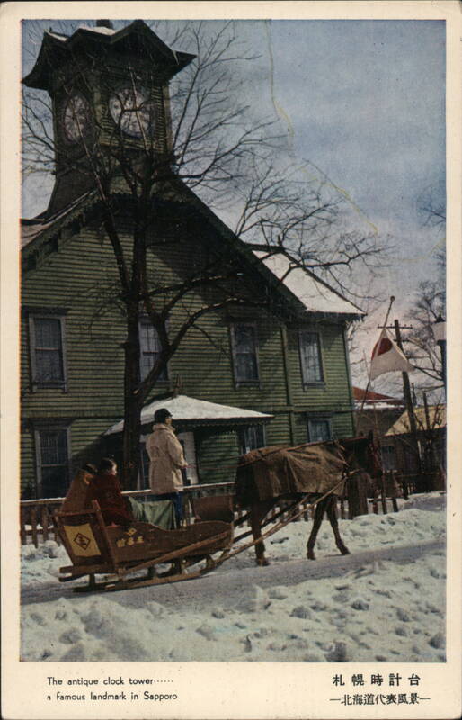 Front: The antique clock tower..... famous landmark in Sapporo 札幌時計台 —北海道代表風景一 Back: J.P.M.S. Fukuda 郵便はがき