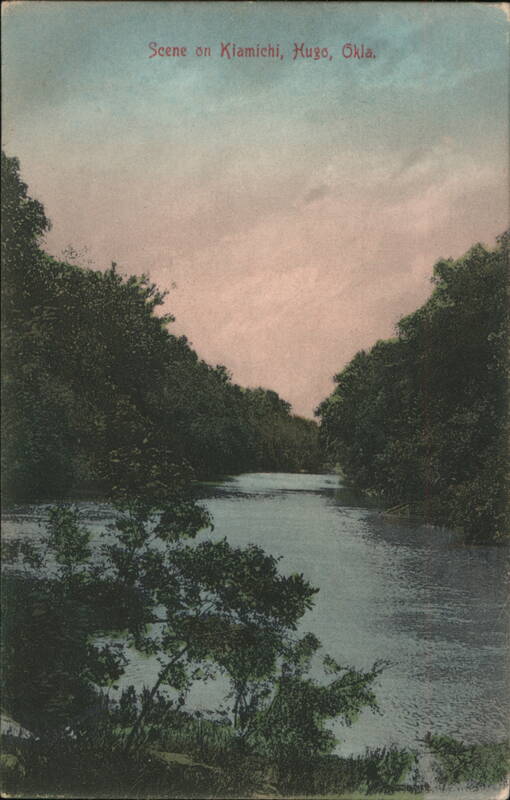 Front: Scene on Kiamichi, Hugo, Okla. Back: Happy DEC 31 1 PM OKLA ONEE 1909 Miss Maud Ree, 2516 Garrison Av St. Louis, Mo. New Year. SL H 14916