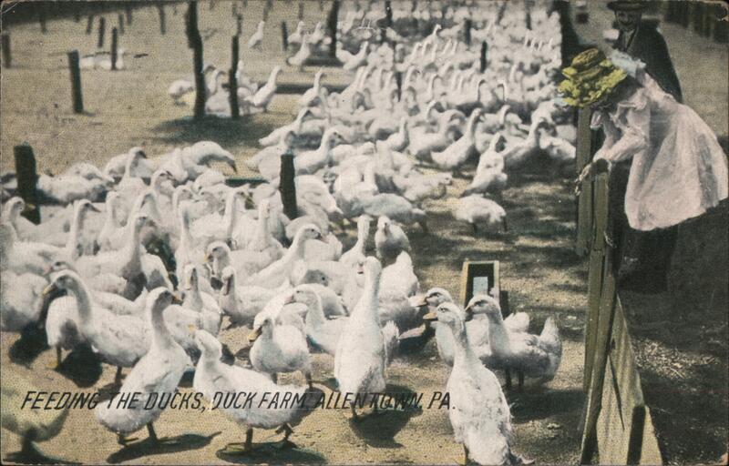 Front: FEEDING THE DUCKS, DUCK FARM ALLENTON PA Back: Published by W. M.Cressman, Allentown, Pa. N.N. 981/2 ENTOWNY 10-AM PA Miss Cornitia Reaton 1905 N. 20th St Consin Maria Phila Pa
