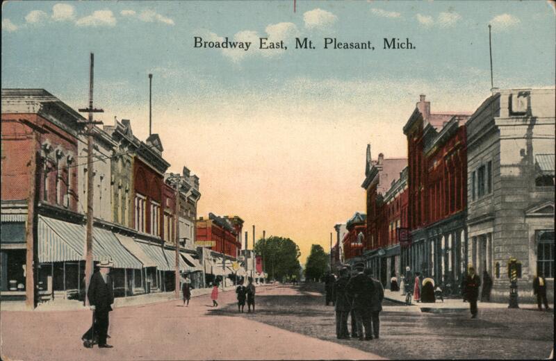 Front: Broadway East, Mt. Pleasant, Mich. Back: E. C. Kropp Co., Publishers, Milwaukee. Post Gard Plate 3837 CO