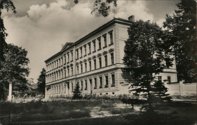 Vintage Postcard: School Building in Poчатки, Czechoslovakia