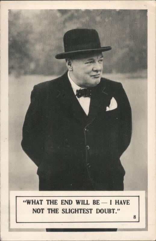 Front: FP "WHAT THE END WILL BE - I HAVE NOT THE SLIGHTEST DOUBT." 8 Back: The Rt. Hon. Winston Churchill Prime Minister of Great Britain. Copyright-E.H. Wilkinson & Co. Limited. Toronto. MADE, IN CANADA