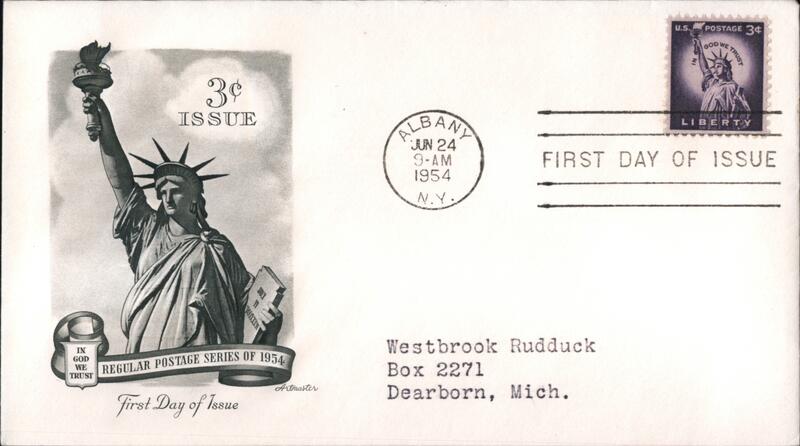 Statue of Liberty with banner: Regular Postage Series of 1954