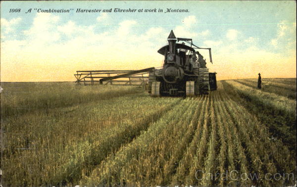 A "Combination" Harvester And Thresher At Work