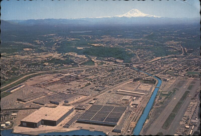 BOEING AIRCRAFT CO. PLANT, Renton, Washington Mount Rainier in the distance. W-471 Ektachrome by Clifford B. Ellis Pub. by Ellis Post Card Co., Arlington, Wash. 98223 65699-C dp DEXTER PRESS, INC. WEST NYACK, NEW YORK HERE
