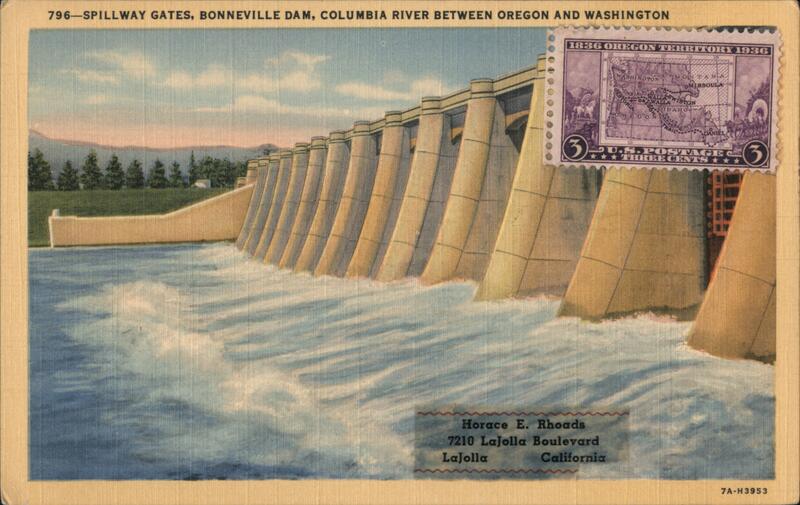 796-SPILLWAY GATES, BONNEVILLE DAM, COLUMBIA RIVER BETWEEN OREGON AND WASHINGTON