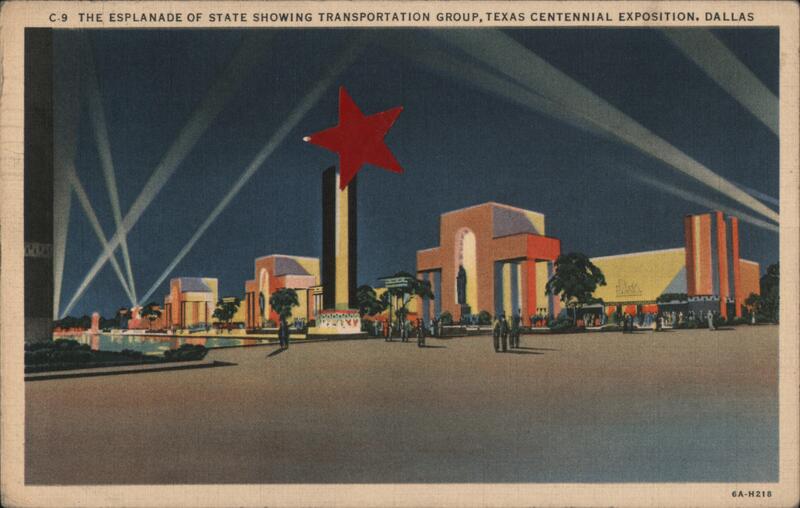 C-9 THE ESPLANADE OF STATE SHOWING TRANSPORTATION GROUP, TEXAS CENTENNIAL EXPOSITION, DALLAS