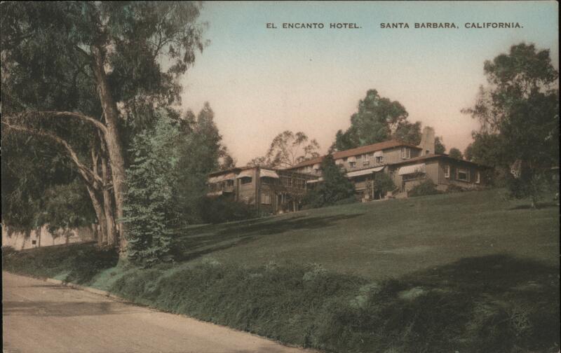 Front: EL ENCANTO HOTEL. SANTA BARBARA, CALIFORNIA. Back: PUBLISHED BY W. W. OSBORNE, SANTA BARBARA, CAL. HAND-COLORED Took two lovely Photos. at El Encanto, 1928 The Albertype Co., Brooklyn, N. Y. Post Cards of Quality. THIS SPACE FOR ADDRESS.