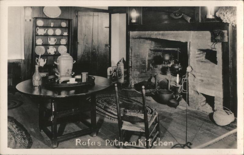 A view of the kitchen in the Rufus Putnam House, which was a part of Campus Martius, the name of the fortified home of the Ohio Company, after the landing on what is now Ohio soil, on April 7, 1788. About this fireplace centered the life of the Putnam family; before it sat many a distinguished guest; in this room Mrs. Putnam served New England dinner with pumpkin pie to a delegation of a dozen or more Indian Chiefs on their way up the Ohio River to Pittsburgh in a pirogue, when they stopped at Marietta in March 1791. The Rufus Putnam House was built in 1788 and has been sheltered within Campus Martius State Memorial Museum, in Marietta, Ohio, since 1931. It is administered as an "Historic House Museum" by the Ohio State Archaeological and Historical Society, of Columbus, in the program "to conserve Ohio's historic heritage." |