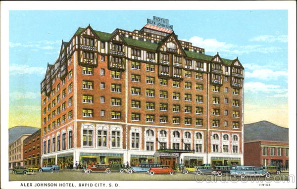| The largest hotel in the state of South Dakota. Also offers a beautiful golf course, excellent fishing, saddle horses, sight-seeing cars and other recreational features. A few of the many features: Indian grill, main dining room, golden web ballroom, observation tower and modernistic solarium. |
