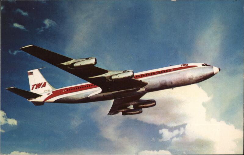 "TWA SuperJet* Boeing 707 carries 130 passengers at