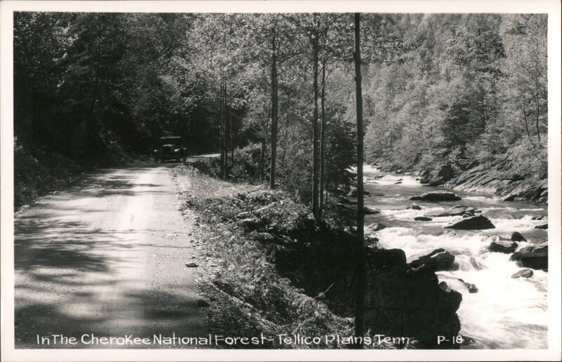 A view of a river and road in the Cherokee National Forest near Tellico Plains, Tennessee.