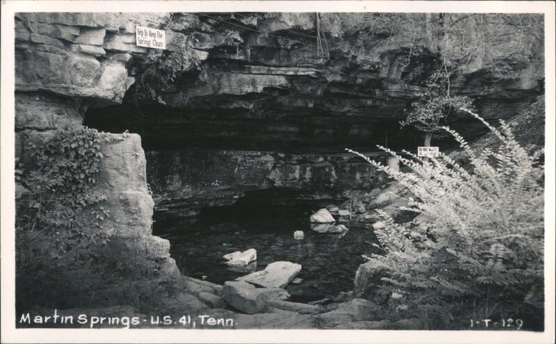 A view of the cave entrance at Martin Springs. Signs request visitors to keep the spring clean and not wade in the spring.