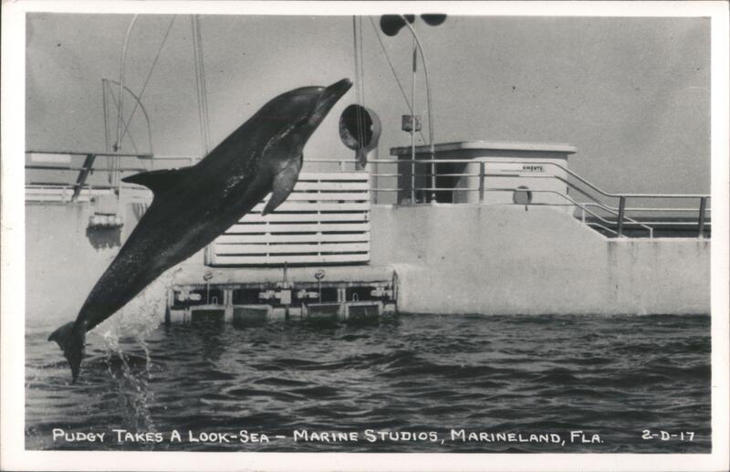 Pudgy the dolphin jumps out of the water at Marine Studios.