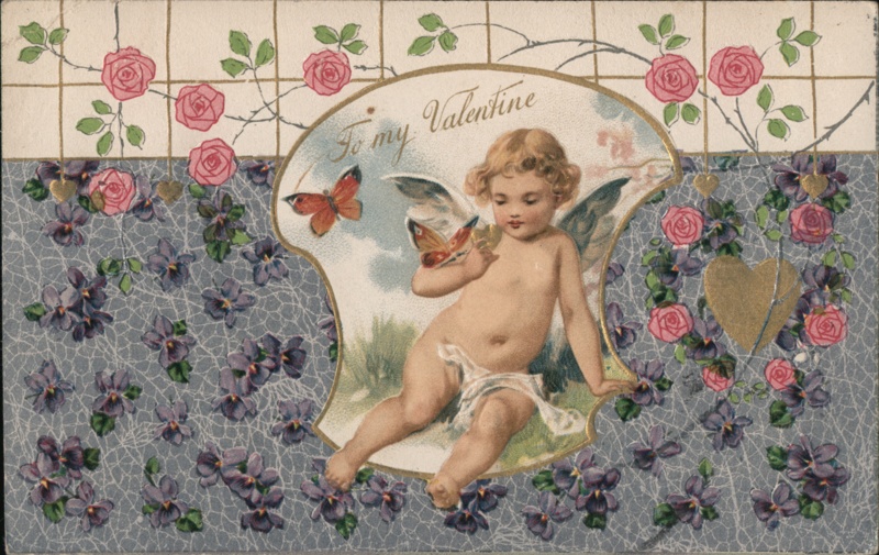 Cherubic Valentine with Butterflies, Roses, and Violets
