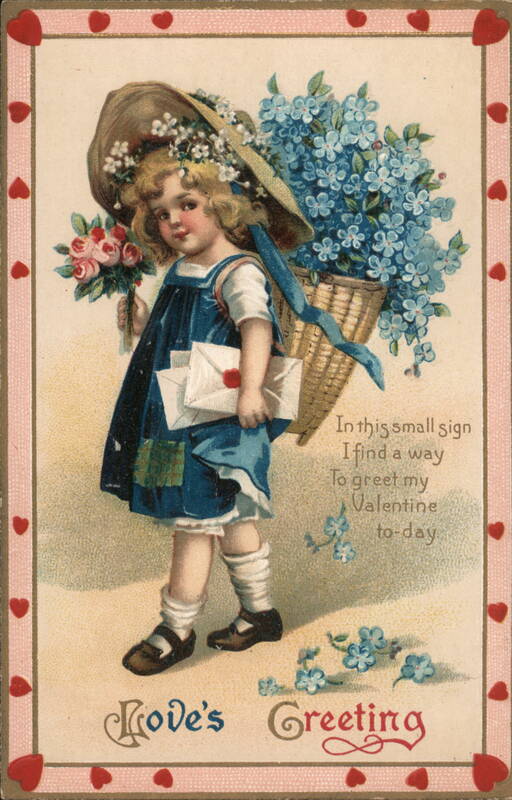 Front: In this small sign I find a way To greet my Valentine to-day Love's Greeting Back: WRITE HERE Christina R. Friend KEBE 18 2PM Miss 1911 Florence Potter Del Rey. Fresno Co, Calif.