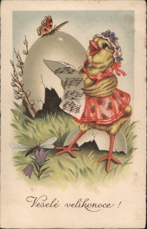 Front: Veselé velikonoce! Back: he 004/193 4175 Om 1920/30 VS 124 Ludmila Obejdova' Sychrov 2. 794 Voetin 2. hsc BBG676 -ucho (20-21 Stastné a v veseli velikonoce Vam přeje Jirina. 7687-1 Mp Import