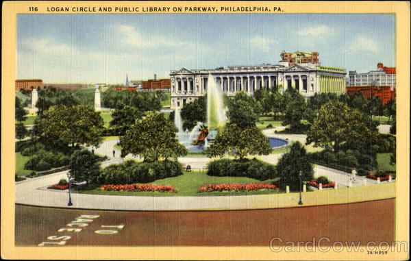 LOGAN CIRCLE AND PUBLIC LIBRARY ON PARKWAY, PHILADELPHIA, PA.