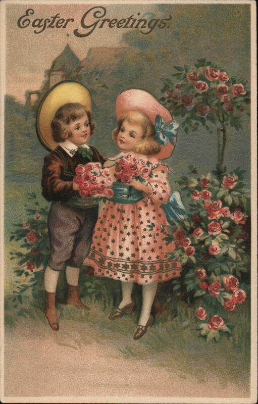 Front: Easter Greetings *** Back: No. 15791. Chromo emb. No. 15811. gel. Gold. Dessin 5. This side for the Address only.
