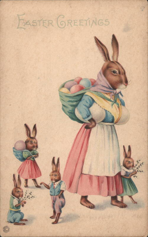 Front: FASTER GREETINGS STECHER POCH Back: 5.50 Apr 4-1922 MADE IN USA. To Robert B. Barberton R. F. 10*35 Ohio. Eggs. bid the This is Bobies Bunny with her Bunny leave. Easter Eggs. you. From early any Eggs Verda and all. Series 779 E