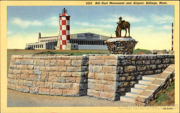 Front: 5253 Bill Hart Monument and Airport, Billings, Mont. BILLINGS MUNICIPAL-AIR BANGA-S 8A-H1491 Back: C.T. ART-COLORTONE" (REG.U.S.PAT.OFF.) ROBBINS-TILLQUIST CO., SPOKANE, WASH.