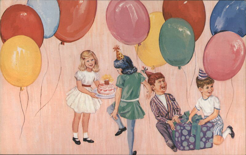 Children's Birthday Party with Cake, Gifts, and Balloons