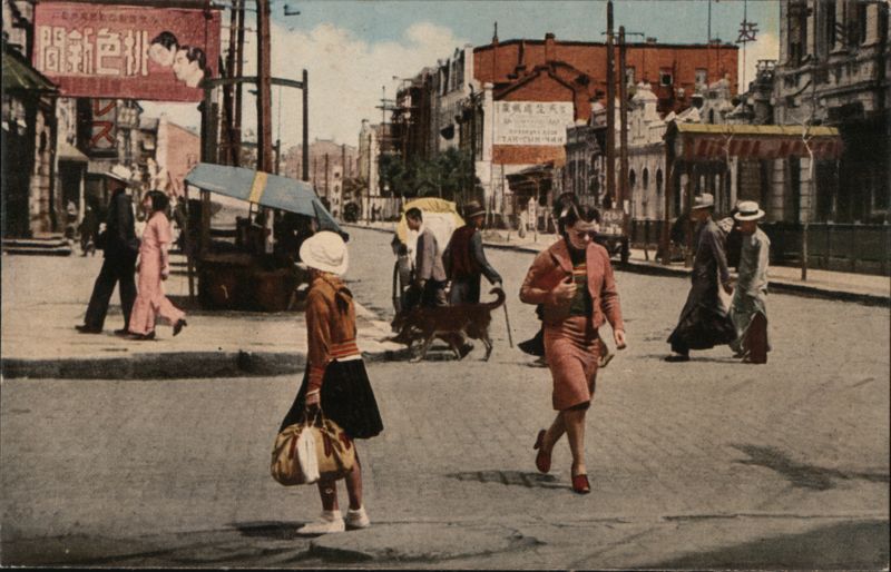 Front: 間新色排 Back: MARK A CARTE POSTALE For Communication SNAP-SHOT IN THE STREET OF HARBIN. プツナス頭街濱爾哈 きがは便 郵