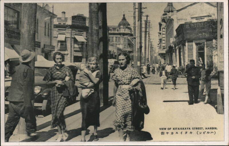 Front: ELELED VIEW OF KITAISKAYA STREET, HARBIN. 街ヤカスイタキ (ンピルハ) THE TEXTILE Back: BY TAISHO MANUFACTURED. TRADE MARK がは 191