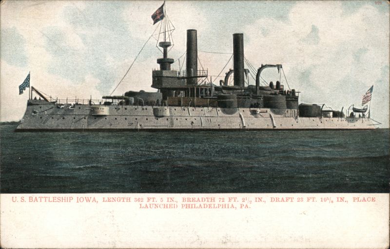 U. S. BATTLESHIP IOWA, LENGTH 362 FT. 5 IN., BREADTH 72 FT. 2, IN., DRAFT 23 FT. 10%/, IN., PLACE