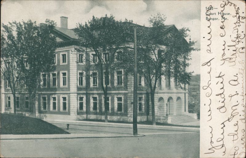 Front: 5483- Court goo Bangor, Me. House, you wi didn't to the M. S. Ar. Write diss Back: MPDEN OCT. 28 SERIES 1902 UNITED STATES OF DANTERICAL 6PM. 1907 MES 1706 FRANKLIN 1790 Mirs Ada Hr. Robinson, Caribou, Cf Suft. Thomas. Me.