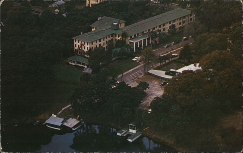VIRGINIA INN on Lake Osceola, Winter Park, Florida William J. Cotter, Proprietor Summer Season Farragut Hotel, Rye Beach, New Hampshire Color Card by R. A. Lasater, Aerial Photographer, Apopka, Fla. 34243 HERE