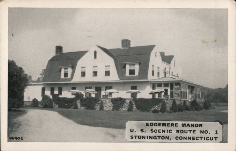 | Fine Food and Service in a Delightful Atmosphere. Cozy Cocktail Lounge. Serving from noon until 9 p.m. Closed Tuesdays. Dinners and Cocktails. Special Luncheons, Weddings and Parties. U. S. Scenic Route No. 1, Stonington, Connecticut - Telephone Mystic 222. |