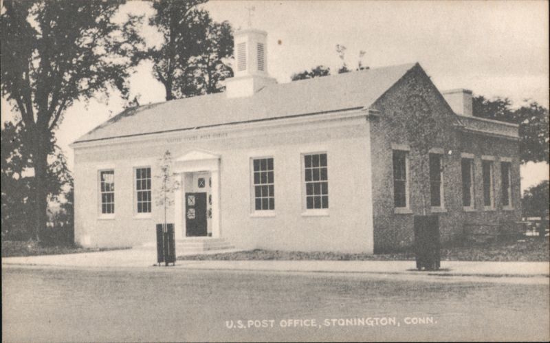 Front: U.S.POST OFFICE, STONINGTON, CONN. Back: PUBLISHED BY BOND MFG. CO., 2 ELD ST.. NEW HAVEN. CONN r STAMP HERE