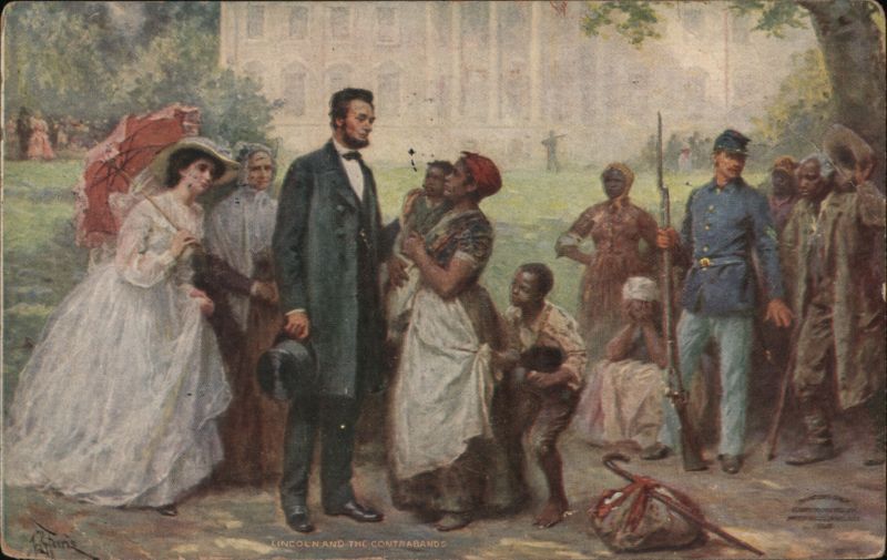 Front: LINCOLN AND THE CONTRABANDS Back: With love, which 11-AM 1919 Mrs. Richard Maddem 22.46 Hughes are Bront. n.y.
