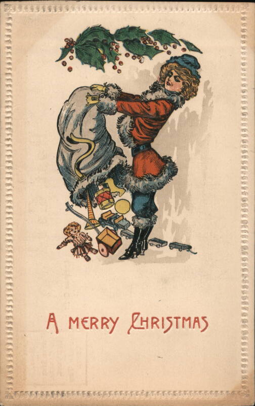 Front: A MERRY CHRISTMAS 5555555555555555554 Back: C. B. HENSCHEL MFG. CO.. MILWAUKEE. AND CANADA. FOREIGN. Two CENTS. RAMTRISEN YESEM
